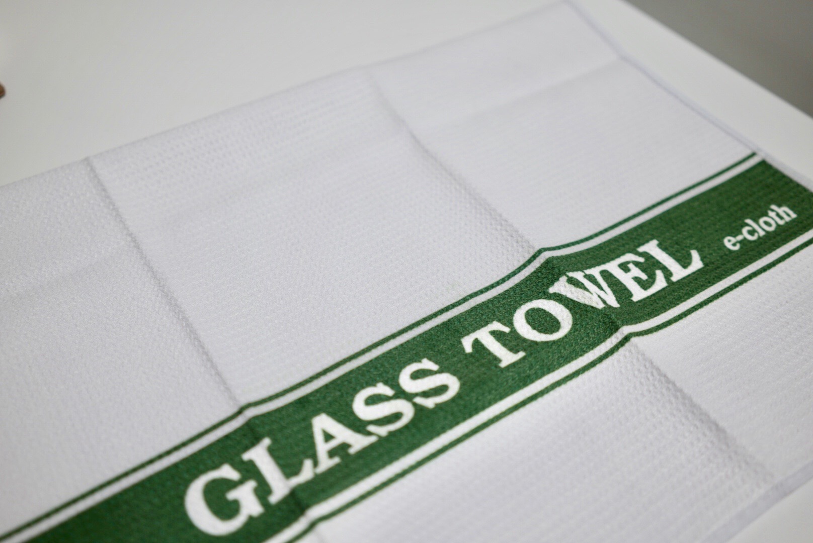 카페에서 사용하는 물컵이나 와인잔 등의 다양한 잔의 물기를 제거할 때에도 이왕이면 용도에 맞게 나온 기능성 제품을 추천합니다. 저는 e-cloth라는 브랜드의 제품을 사용 중인데요. 주변에 와인잔을 많이 다루는 사람이 있다면, 아마도 이미 사용 중일 가능성이 높을 겁니다. 초록색으로 새겨진 로고는 약간 이염될 수 있었는데, 이 부분만 개선되면 더할나위없이 좋을 것 같습니다.