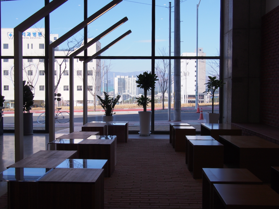 공간에서는 신축 건물의 깔끔함, 높은 층고의 시원함, 밝은 자연 채광의 장점을 두루 가지고 있었습니다. 사진에는 없지만 밤에도 조명 덕분에 분위기가 좋았습니다.