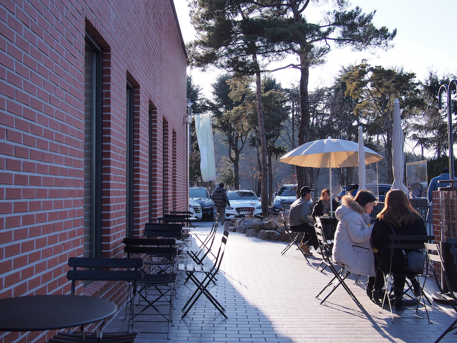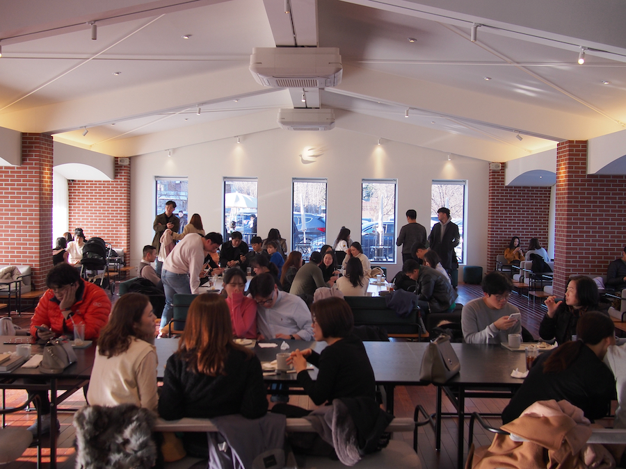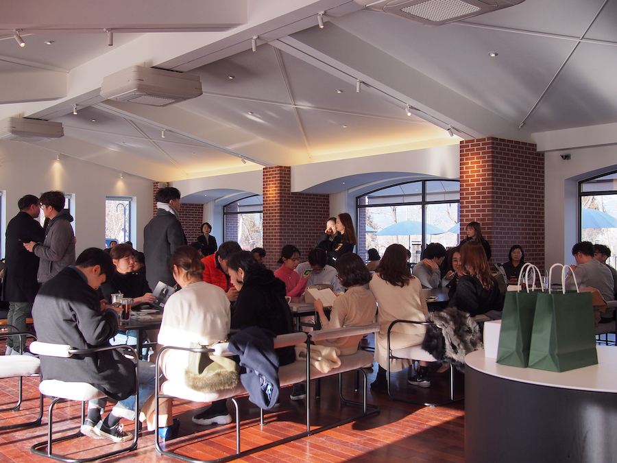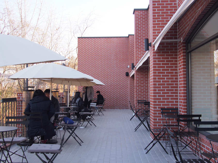 붉은 벽돌의 단독 건물이 갖는 건물의 느낌과 포인트로 사용된 녹색, 쉴 곳을 찾아온 사람들이 모여 밝은 분위기를 연출했고 직원들도 어둡지 않아서 좋았습니다. 전체적으로 매우 조화롭게 성공적으로 단독 매장을 자리잡게 만든 것 같습니다. 카페 기획 면에서 배울 부분이 많이 있습니다. 꼭 한번 방문해보시길.
