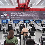 예선전이 열리는 날 다시 스트롱홀드 본사를 방문했습니다. 연습실로 운영되던 때와 달리 스트롱홀드 로스팅 머신 옆에 개별 모니터가 장착되어 있었는데요. 스마트로스팅 인포 시스템 (Smart Roasting Information System)을 통해 선수의 프로필과 로스팅 진행 과정을 보여주고 있어서 기존의 로스팅 대회보다 확실히 '스마트'한 환경에서 운영되고 있었습니다. 대회가 끝나고 시상을 앞둔 자리에서 WCE(World Coffee Event)에서 파견된 International Judge, Jake Hu (Taiwan) 역시 이런 모습이 인상적이었다는 이야기를 하기도 했습니다. KCRC의 공식스폰서인 스트롱홀드테크놀로지에서 개발자와 디자이너 등 다양한 인적 자원을 이번 대회 후원을 위해 투입한 것 같..
